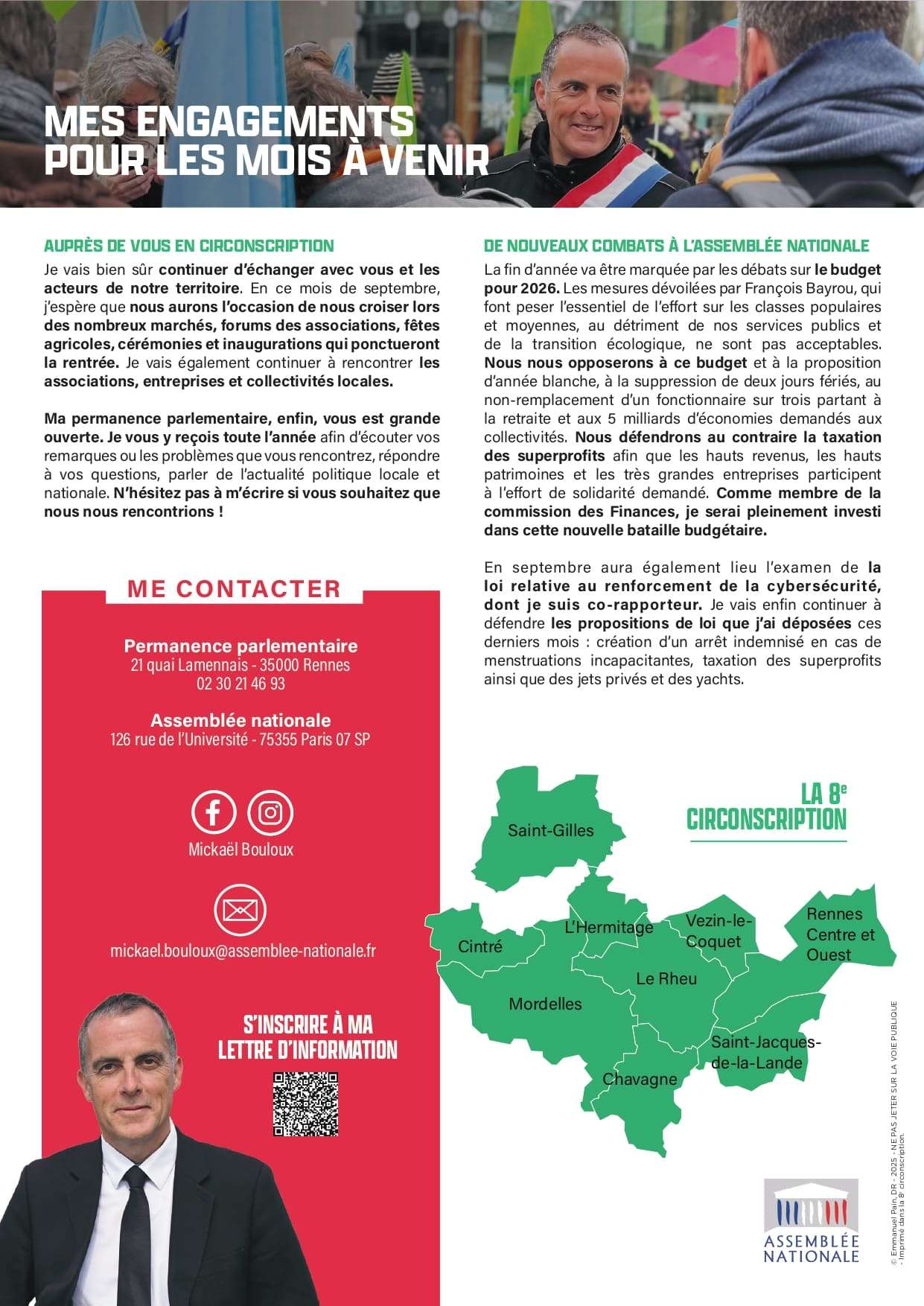 Conseiller municipal du Rheu, j’en ai été maire de 2015 à 2022, année de mon élection à l’Assemblée nationale.