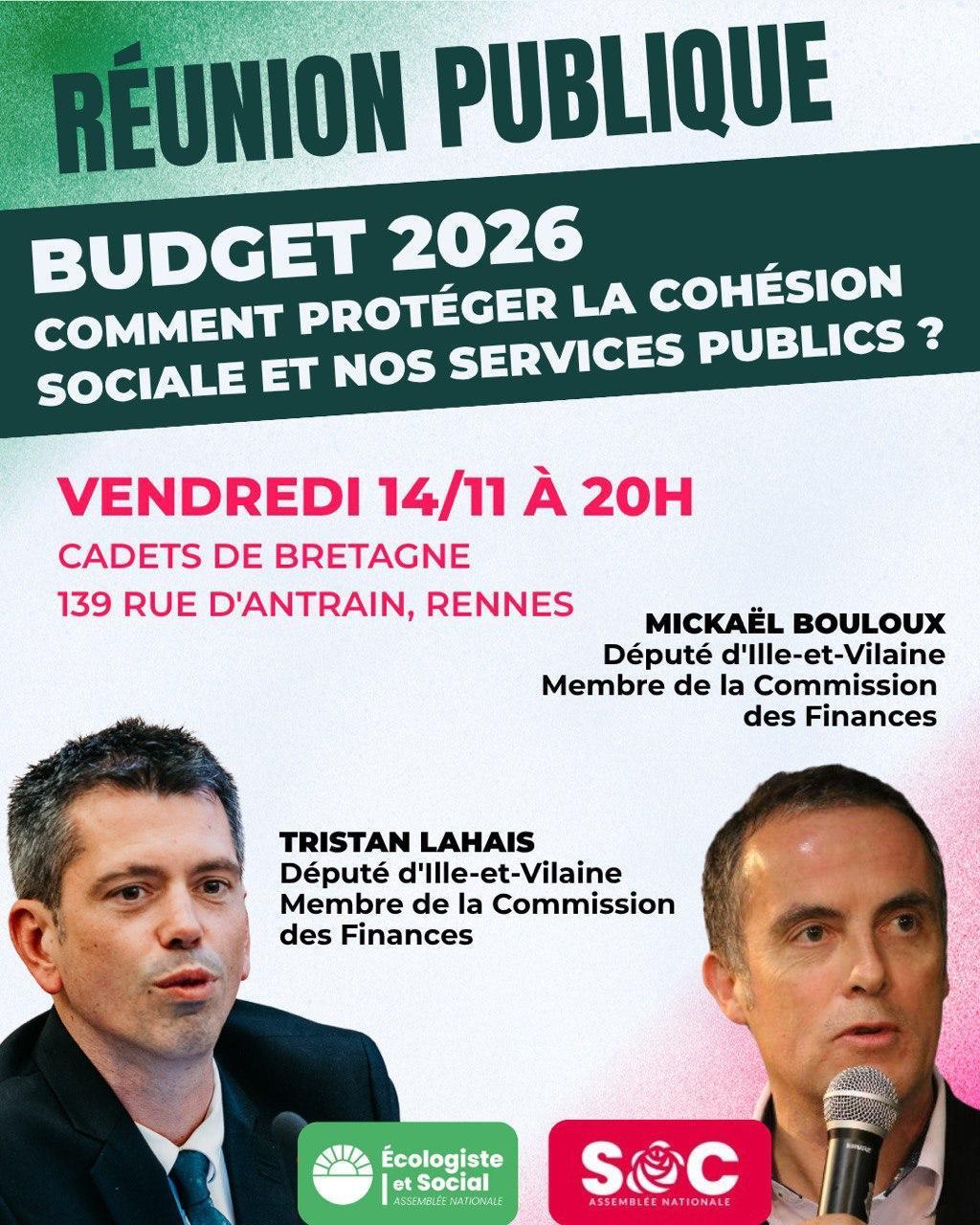 14/11 : Réunion publique pour échanger avec vous sur le thème "Comment protéger la cohésion sociale et nos services publics ?" avec mon collègue député Tristan Lahais.